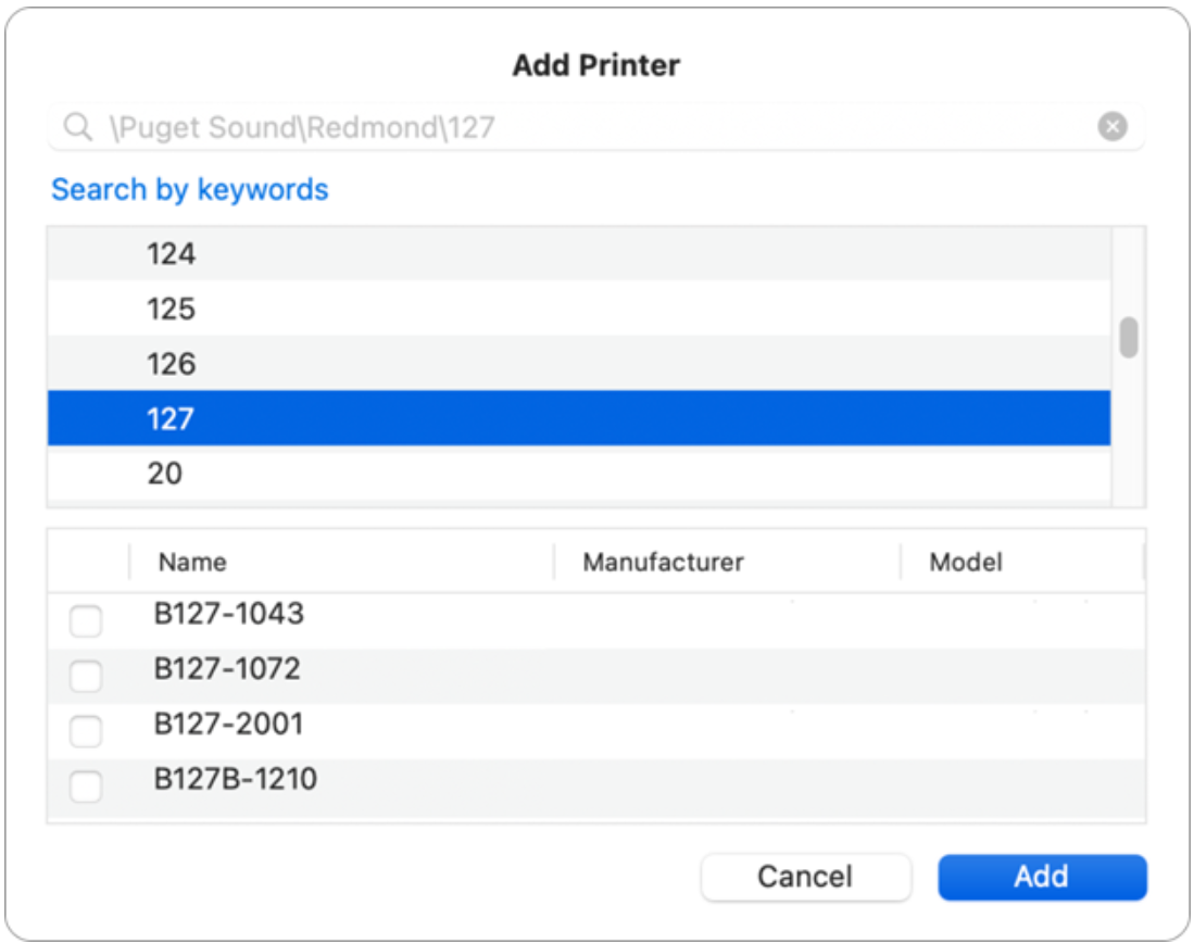 Dopo aver installato l’app Universal Print e aver effettuato l’accesso a un account Microsoft Entra ID idoneo per il servizio, gli utenti potranno cercare le stampanti per nome o anche restringere l’elenco in base alla posizione, quindi aggiungere le stampanti pertinenti ai loro dispositivi.