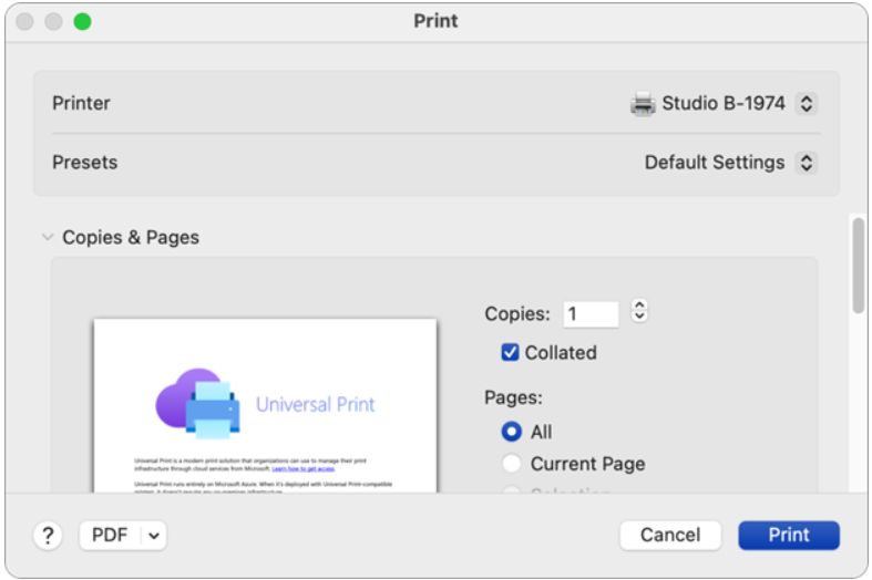 Nella giornata di oggi Microsoft ha annunciato la disponibilità dell’anteprima pubblica del servizio Universal Print su macOS. Grazie a questa funzionalità gli utenti potranno stampare da qualsiasi App su Mac senza la necessità di installare driver.