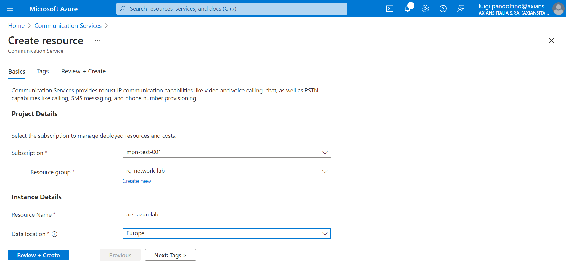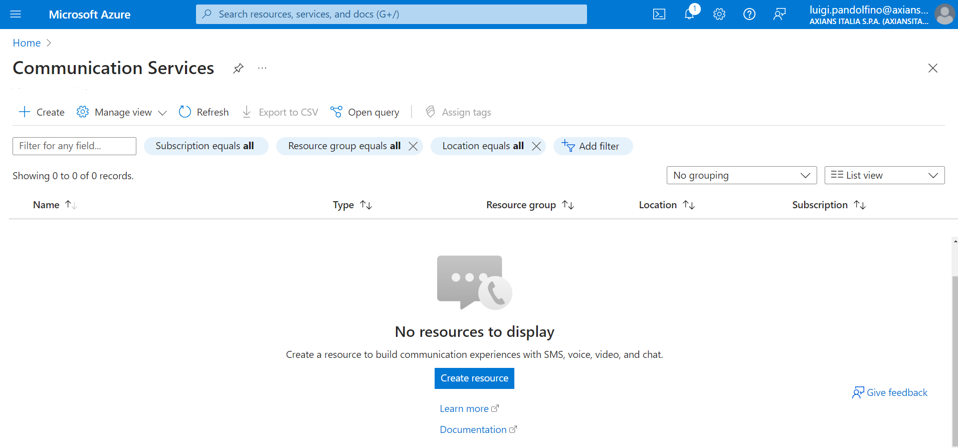 Il primo passo è la creazione della risorsa in Azure (chiaramente è necessaria una Subscription):