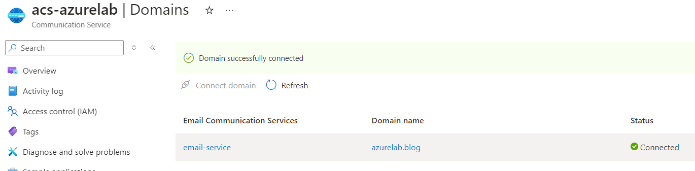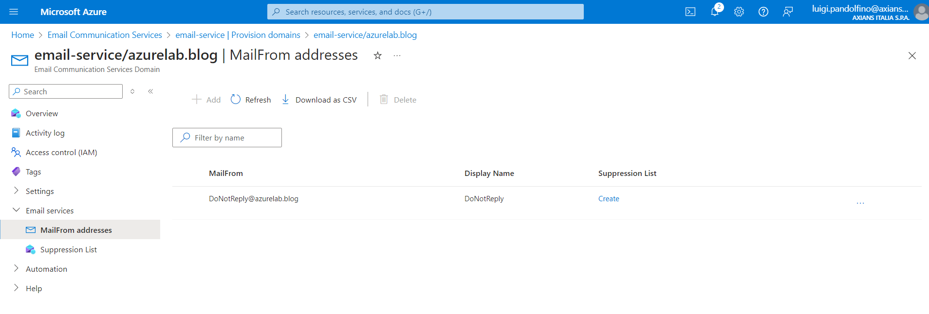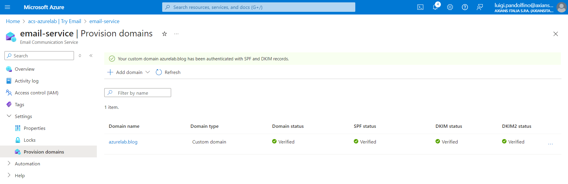 La procedura a questo punto è completa e possiamo verificarne la correttezza all’interno della sezione Email Communication Services: