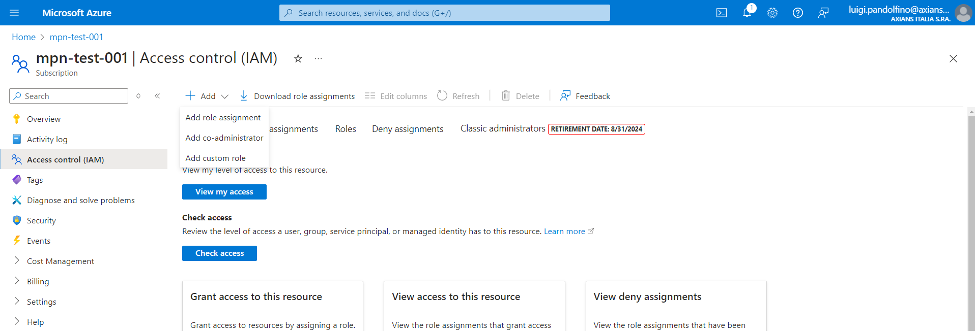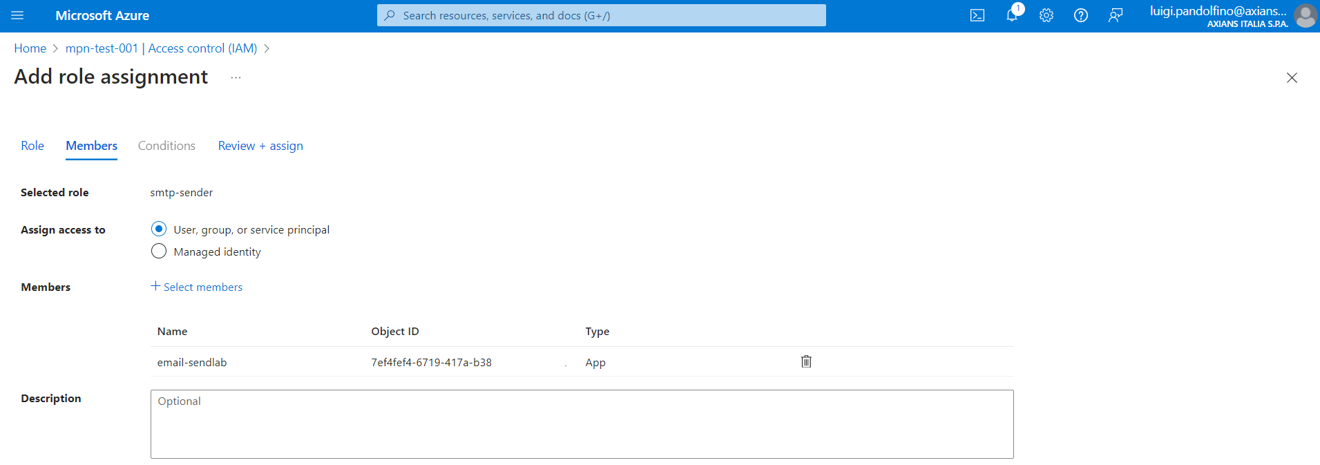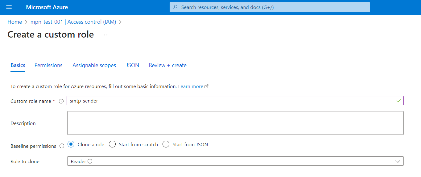 Sempre in merito all’autenticazione sarà ora necessario crere un ruolo RBAC personalizzato (custom role) che disponga dell’autorizzazione per l’invio delle e-mail: