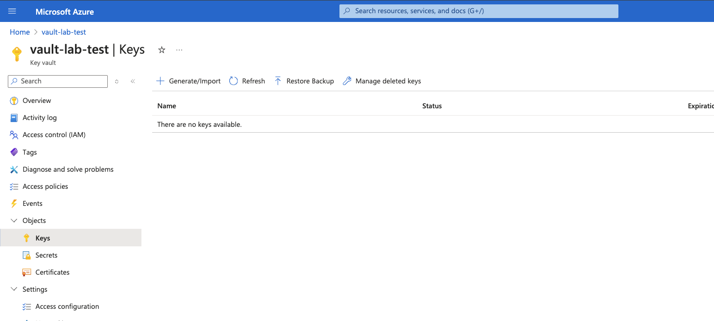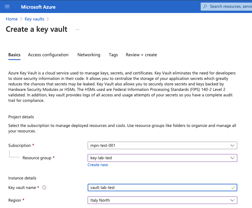Come nota, per procedere alle attività è necessario aggiungere il ruolo Key Vault Administrator, Owner o Contributor.