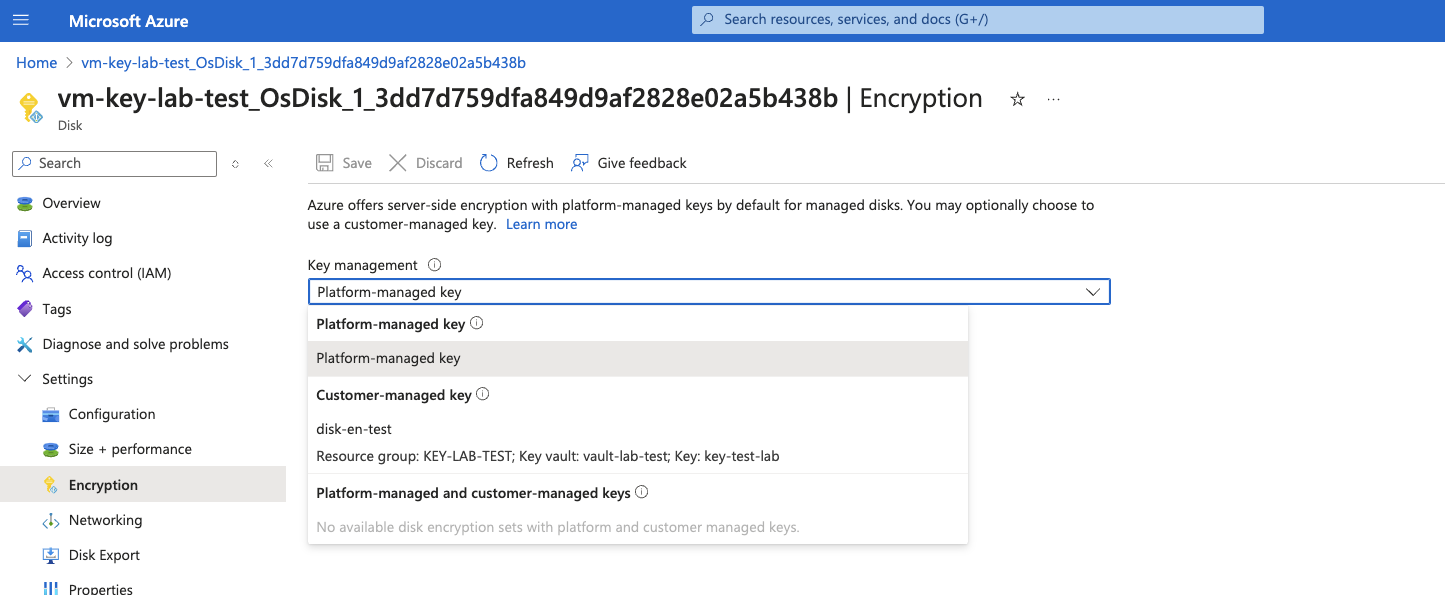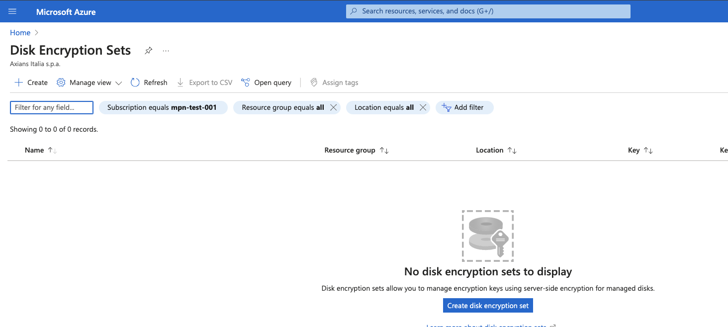 Prima di iniziare a lavorare sui dischi delle nostre VM è necessario creare un Disk Encryption Set: