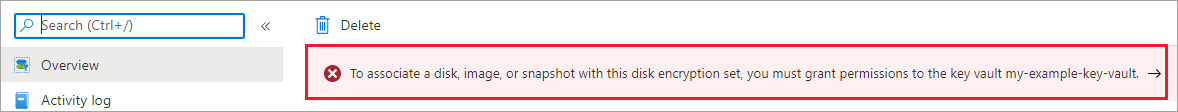 Nota: prima di andare avanti con la procedura dovremo tornare nella home del Disk Encryption Set e cliccare sull’alert così da abilitare i ruoli necessari: