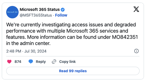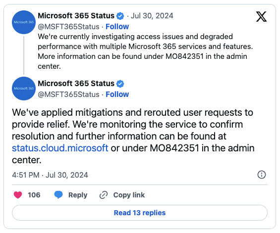 L’evento ha interessato anche un sottoinsieme dei servizi Microsoft 365 e Microsoft Purview.