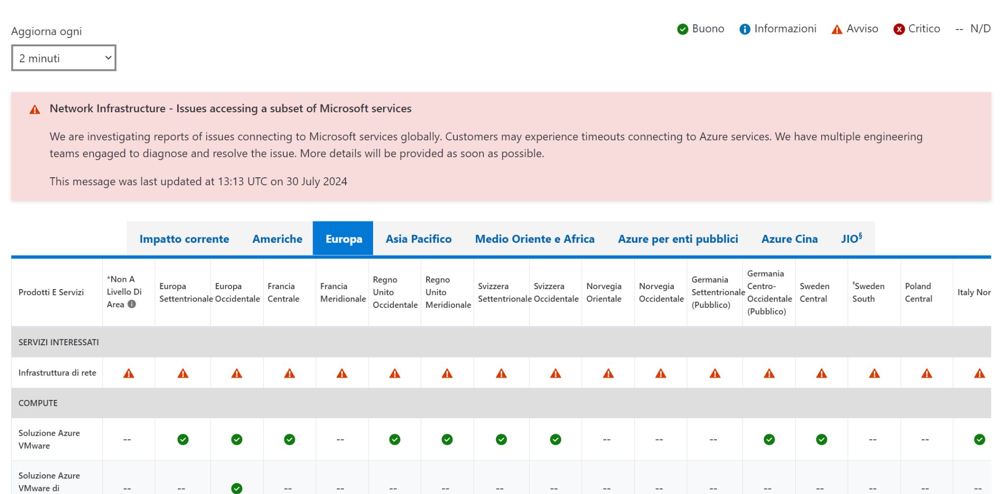 Gli utenti di tutto il mondo, in particolare in Europa, segnalavano difficoltà nell’accesso a un sottoinsieme di servizi Microsoft, i sintomi principali erano timeout e problemi di connettività.