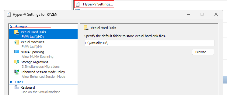 E’ sufficiente modificare i puntamenti nelle impostazioni generali (Hyper-V Settings):
