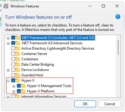 Nel pannello di controllo, nella sezione Turn Windows Feature on or off: