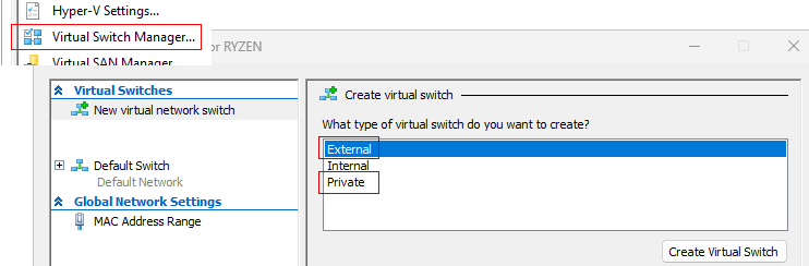 Di base le macchine virtuali utilizzano il Default Switch, ma noi andremo a creare due nuovi virtual switch: