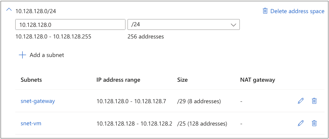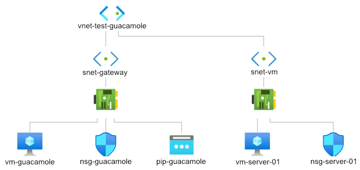 Saranno presenti due subnet distinte, la prima (snet-gateway) per una macchina linux su cui installerò Guacamole, la seconda (snet-vm) per la VM a cui accedere da remoto.