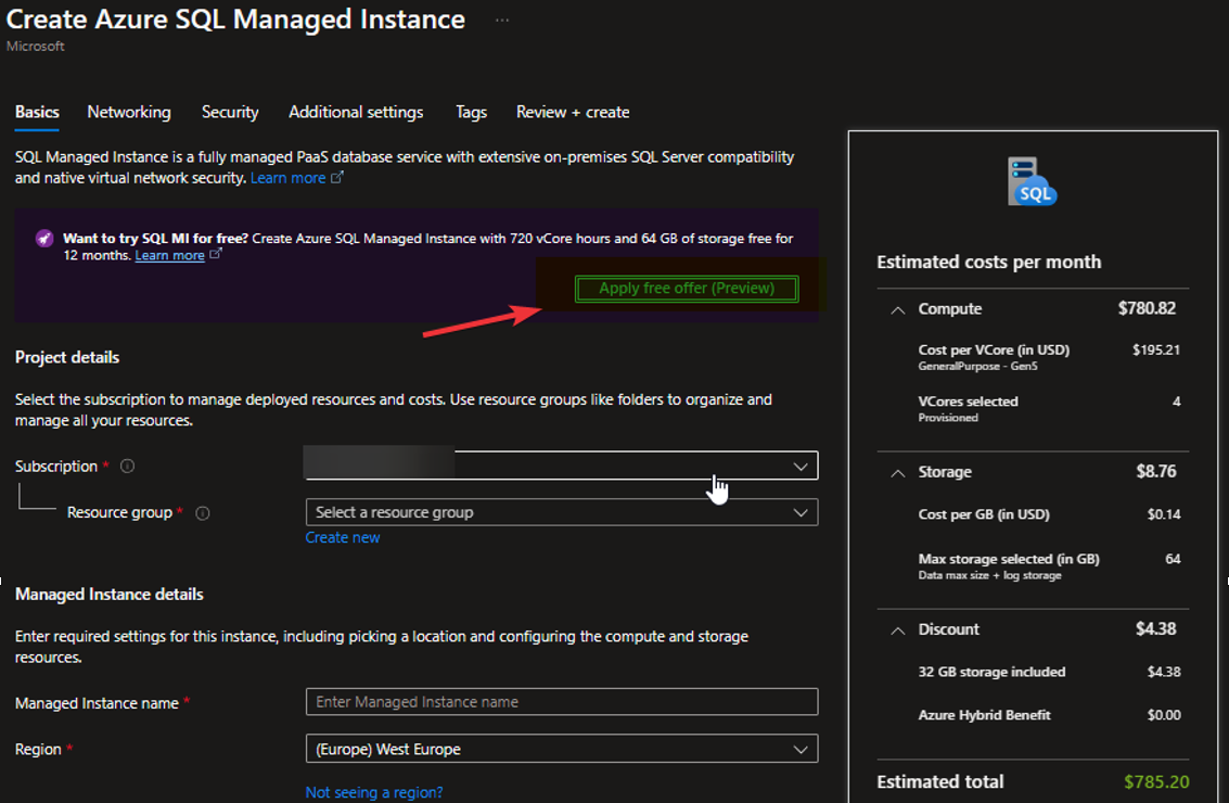 Risorse utili: Try Azure SQL Managed Instance for free (preview)