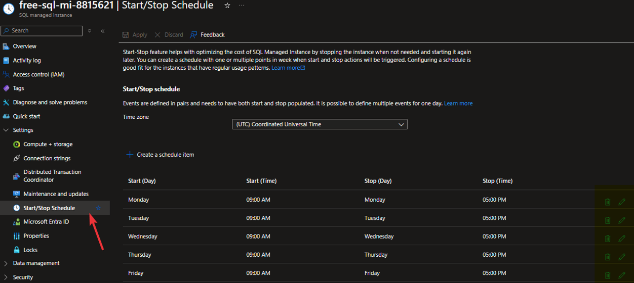 Una delle cose da verificare è la schedulazione di accensione e spegnimento della nostra istanza per risparmiare ore e avere l’istanza accessibile solo mentre facciamo i test:
