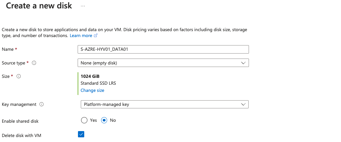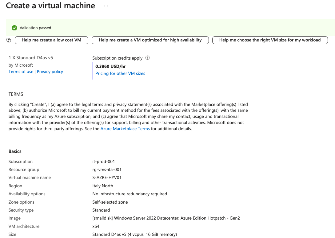 Per quanto riguarda i dischi, ho scelto una istanza Windows [smalldisk] il che vuol dire che la dimensione del disco del sistema operativo sarà di 30 GB. Relativamente a quello in cui andremo a posizionare i file delle nostre VM, in questo esempio sarà da 1 TB, ma la scelta sul dimensionamento andrà fatta in base alle esigenze del caso.