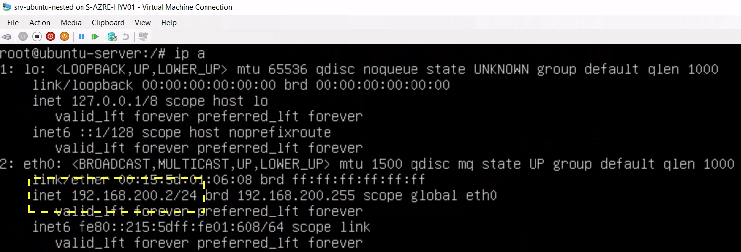 Per il laboratorio ho scelto di utilizzare una Ubuntu Server 22.04. Dopo aver creato la macchina virtuale impostando un indirizzo IP (in questo esempio 192.168.200.2/24) potremo raggiungerla direttamente dall’host Hyper-V: