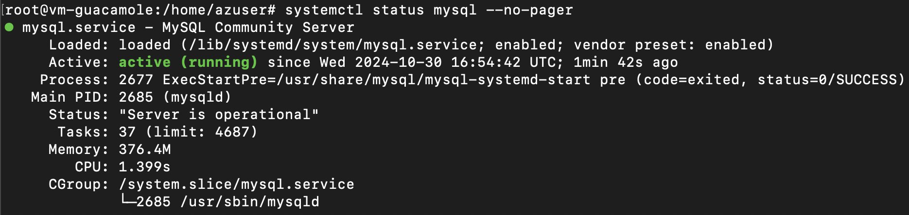 Possiamo controllare lo stato del servizio MySQL tramite il comando systemctl status mysql --no-pager