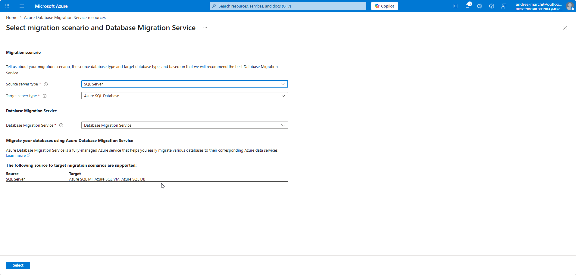 - cerca Azure Database Migration Service