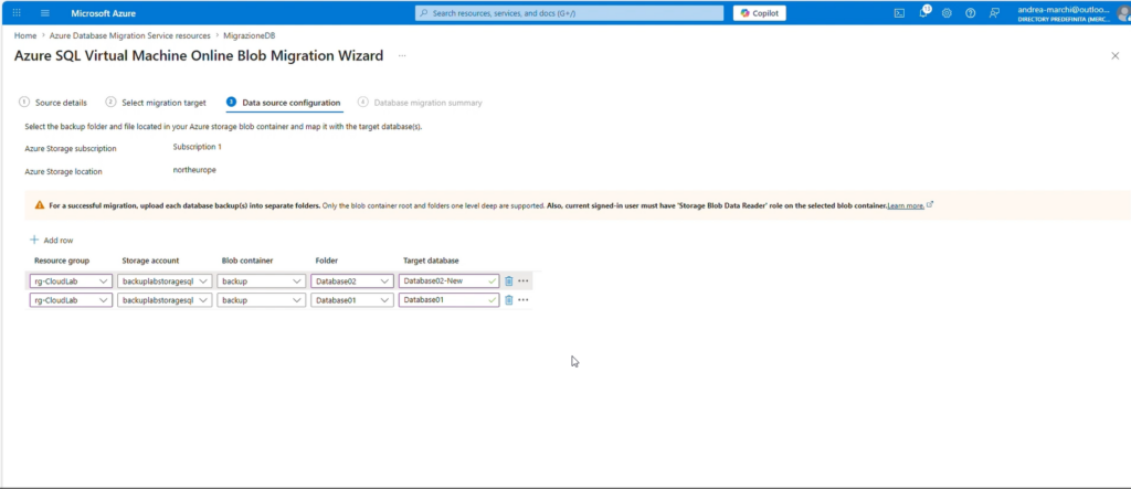 Configurazione Data Source (backup su Blob)