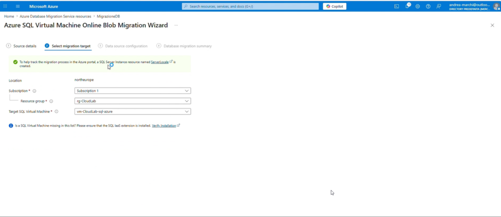 Configurazione Target (Azure SQL VM)